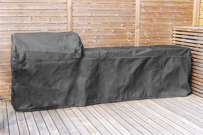 Wij hebben ook speciaal ontworpen en op maat gemaakte beschermhoezen, zodat deze de perfecte pasvorm hebben voor uw buitenkeuken. Een weerbestendige beschermhoes houdt uw barbecue of buitenkeuken vrij van regen, vuil en sterk zonlicht. Verlengt de levensduur van de keuken en zorgt dat deze langer als nieuw blijft. Hebt u hulp nodig, of hebt u vragen over maten en kleuren, neem dan contact op met onze klantendienst, dan helpen wij u.